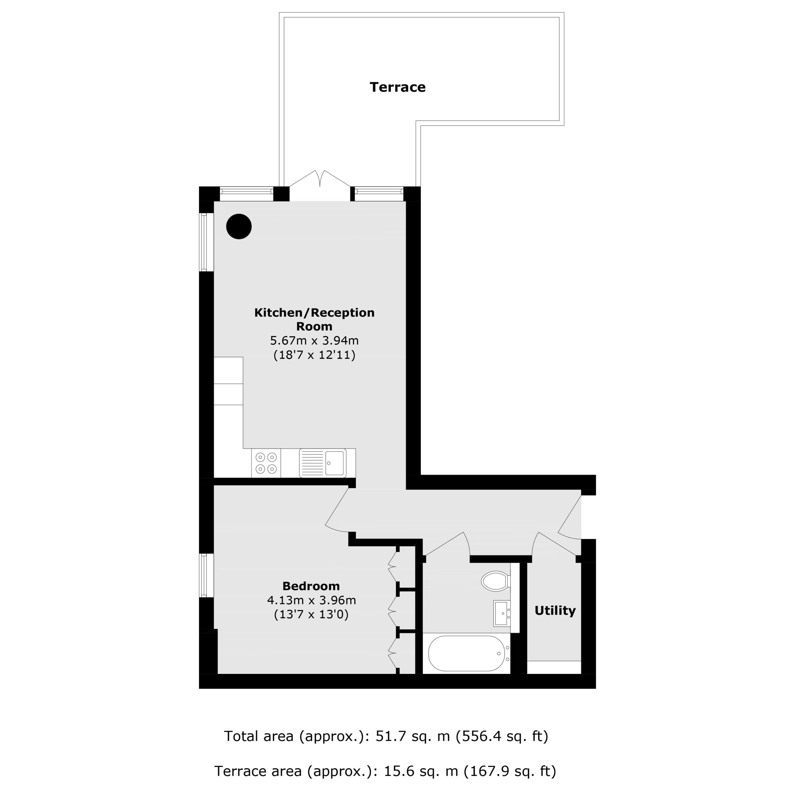 This apartment has been decorated to an extremely high standard throughout. The apartment comprises of a large open-plan living, dining and kitchen area with floor to ceiling height window opening onto a private balcony. The kitchen is fully equipped to a very high standard including oven, fridge/freezer and microwave.