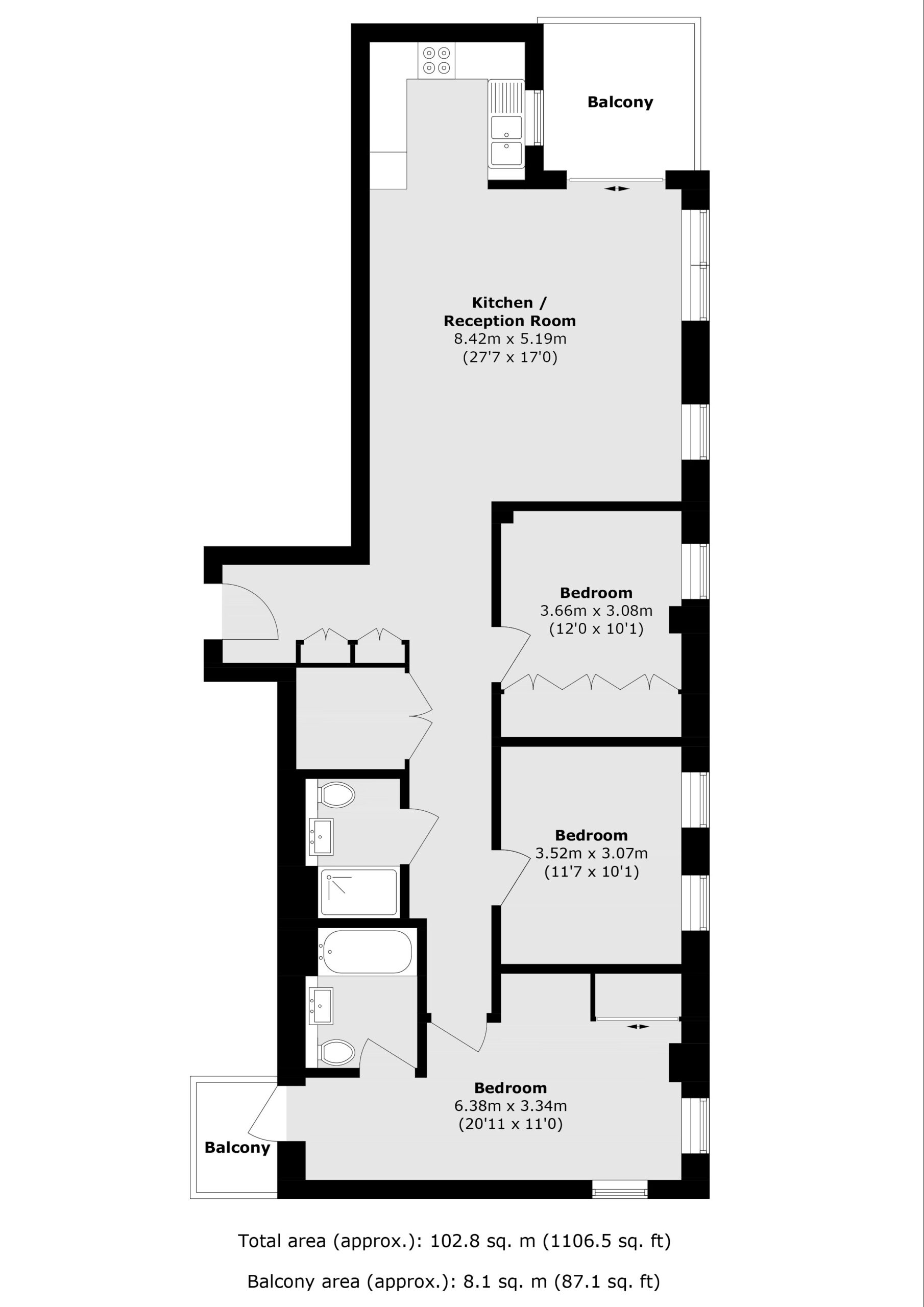 B&C Properties are delighted to present this spectacular bright and spacious three-bedroom three-bathroom apartment with breathtaking views on the18th Floor of Birch house in the much sought after Kidbrooke village.